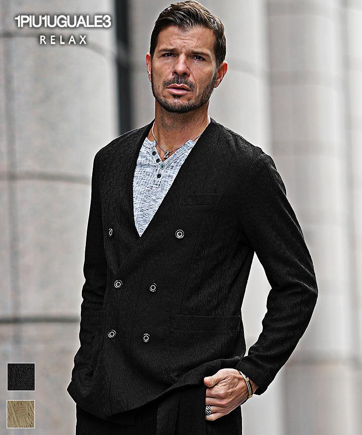 1PIU1UGUALE3 RELAXLINEN-TOUCH JACQUARD NO-COLLAR DOUBLE-BREASTED JACKET19,910