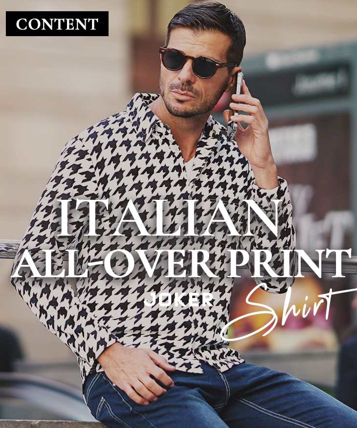 CONTENTS 柄で魅せる大人の余裕。イタリアンカラー総柄シャツ