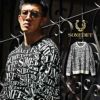 クルーネックのニットに ブランドロゴである「SOMEDIFF」を 全体に魚眼のように散りばめ、 ブランドたる威厳を感じる一着。