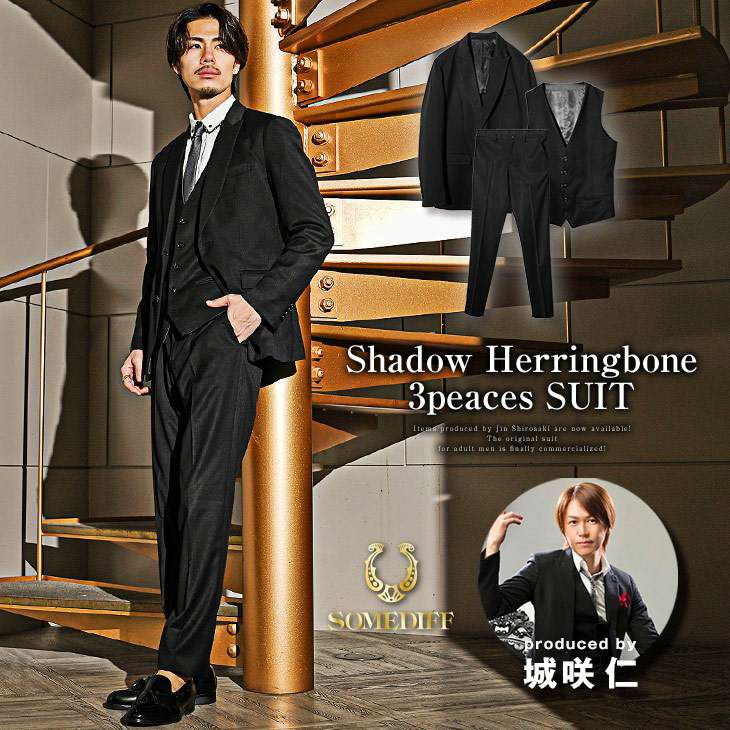 【シャドーヘリンボーン柄スリーピーススーツ】