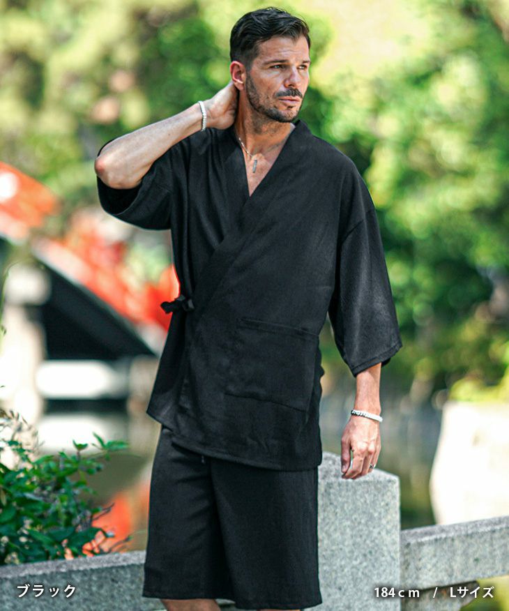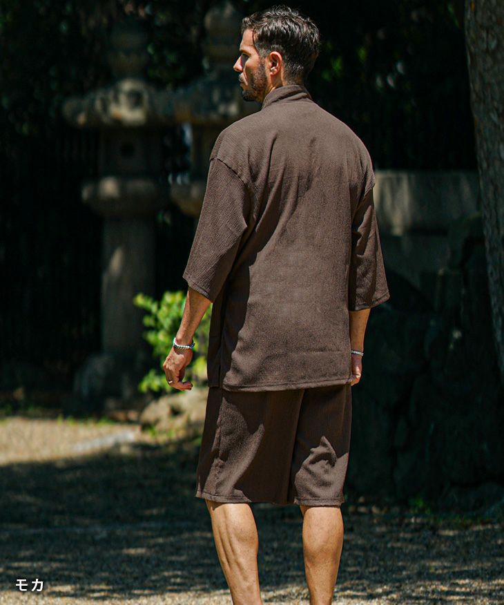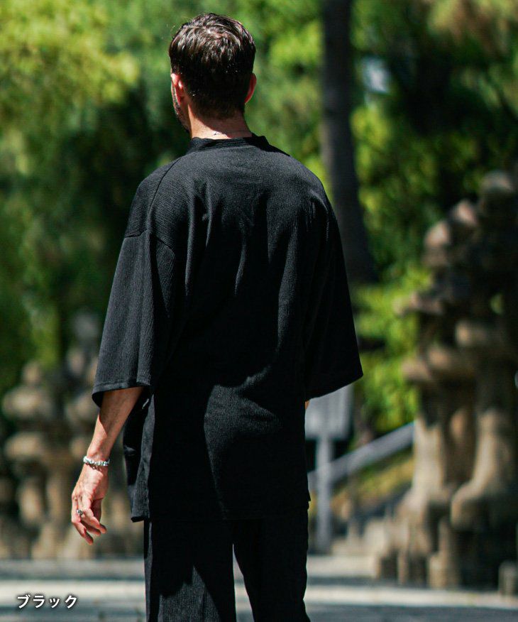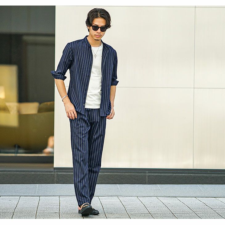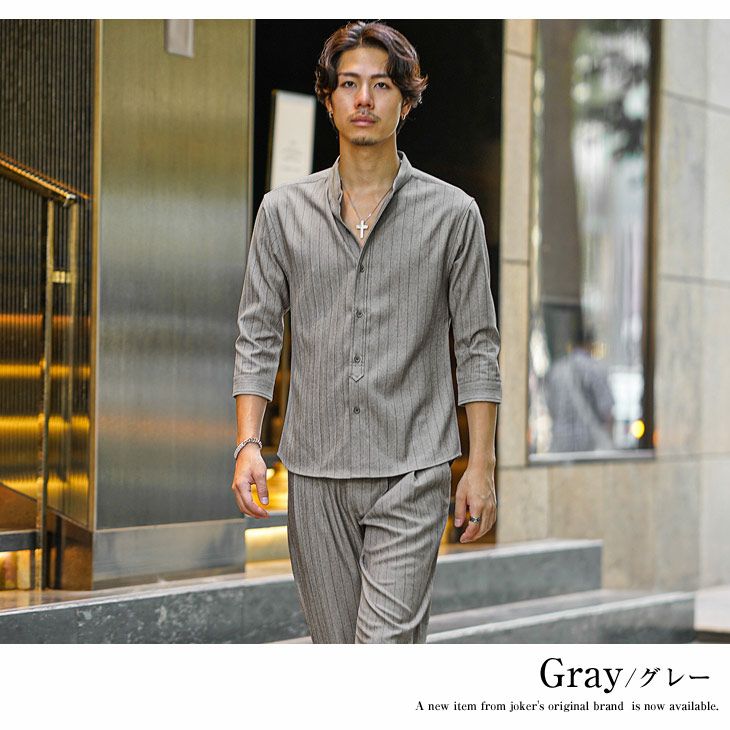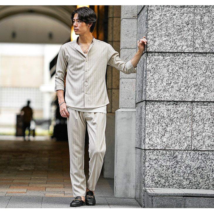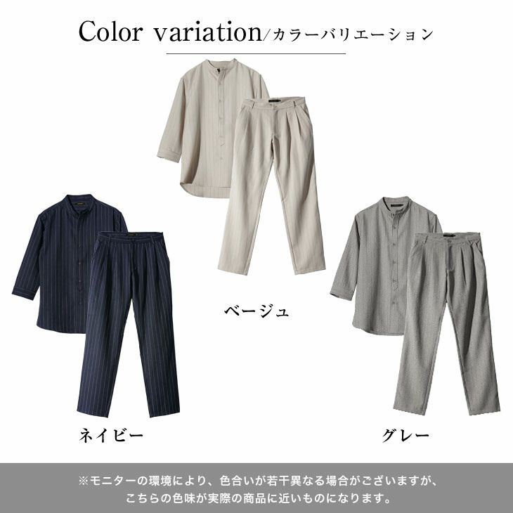 SOMEDIFF/サムディフ 【送料無料】バンドカラー7分袖セットアップ