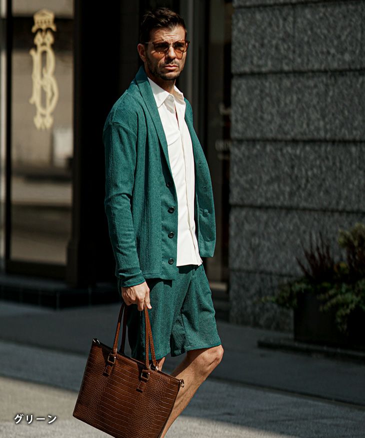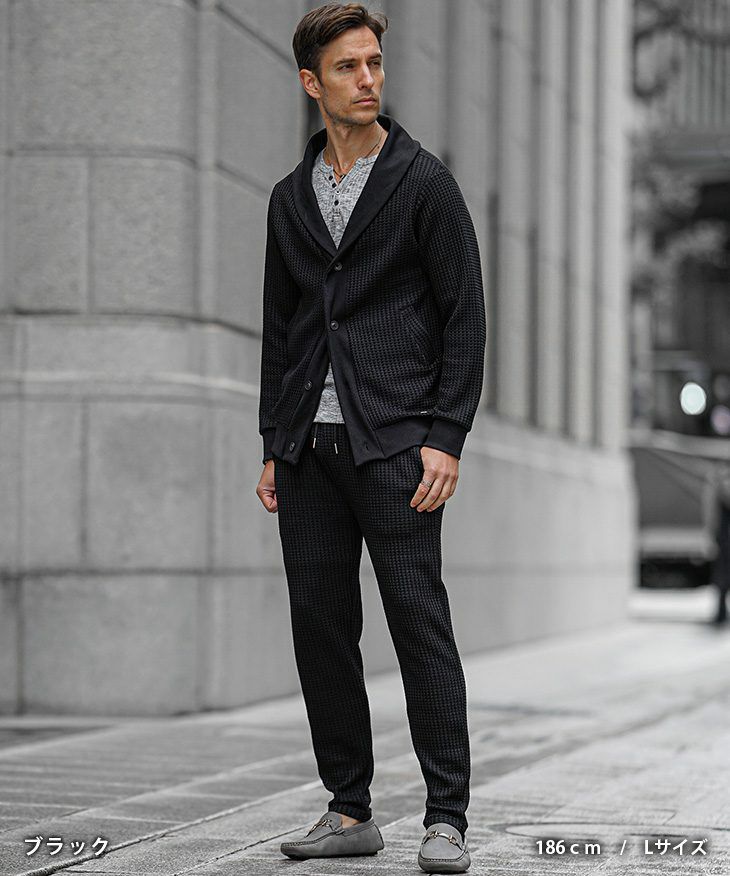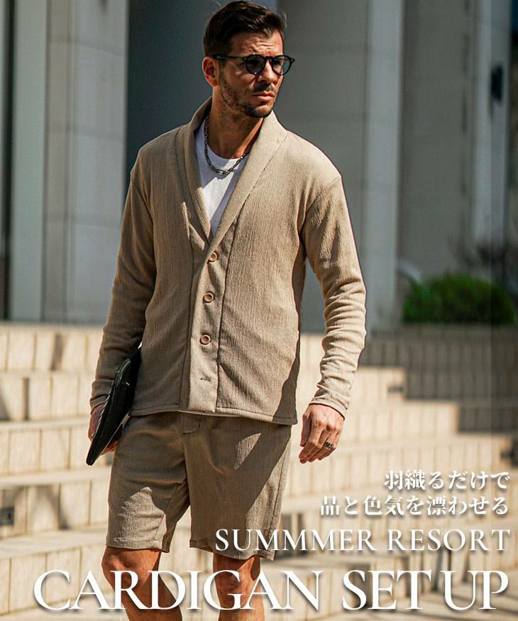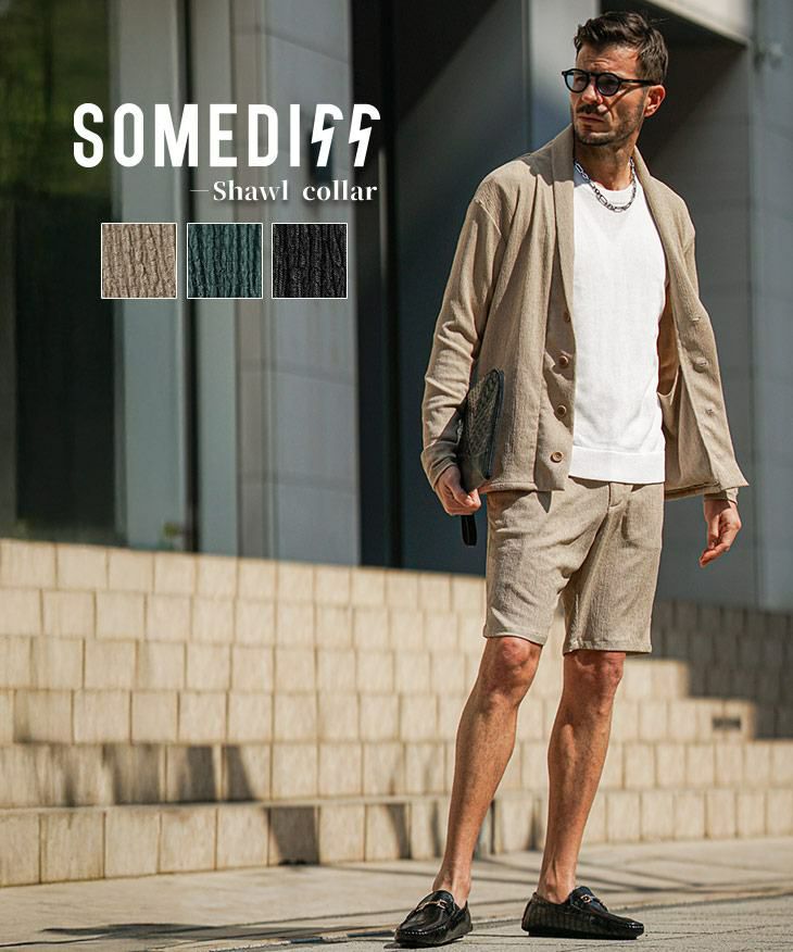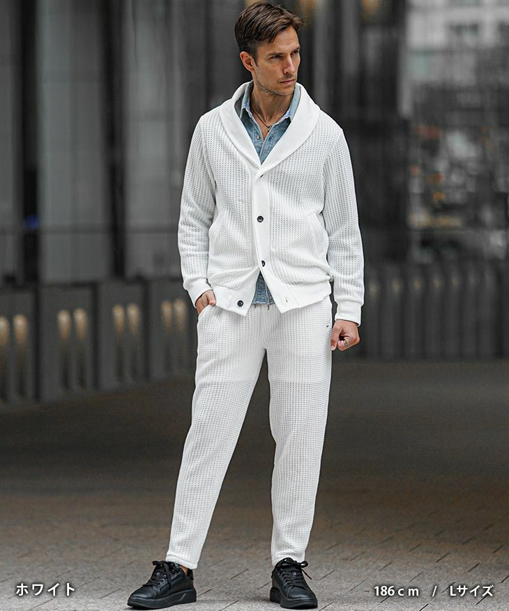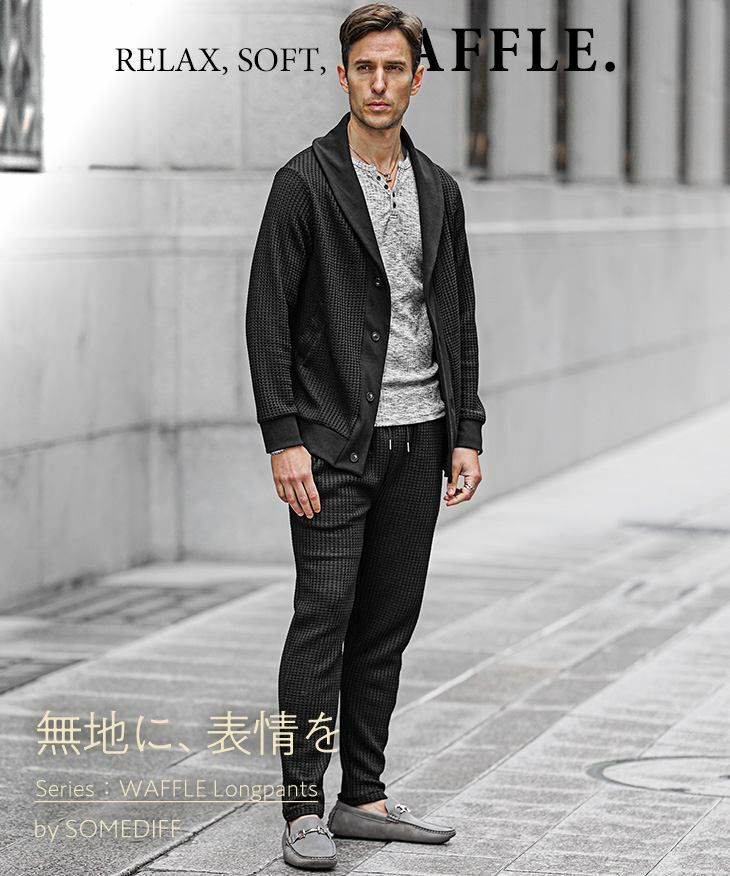 SOMEDIFF/サムディフ ワッフルショーカラーカーディガンセットアップ