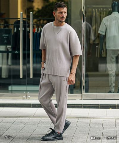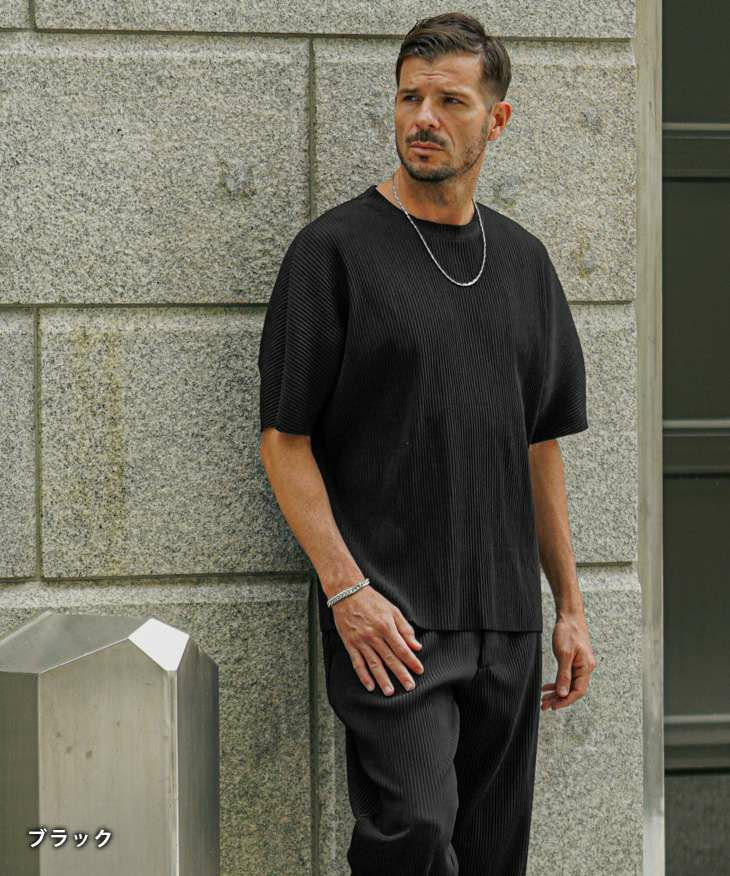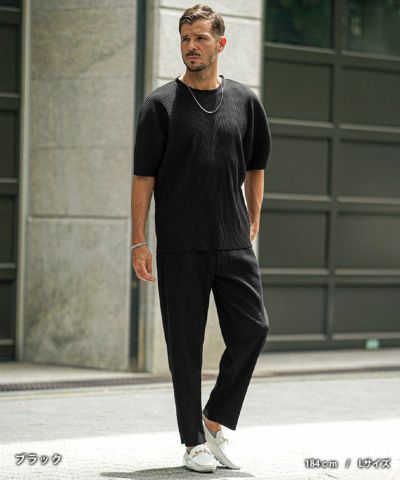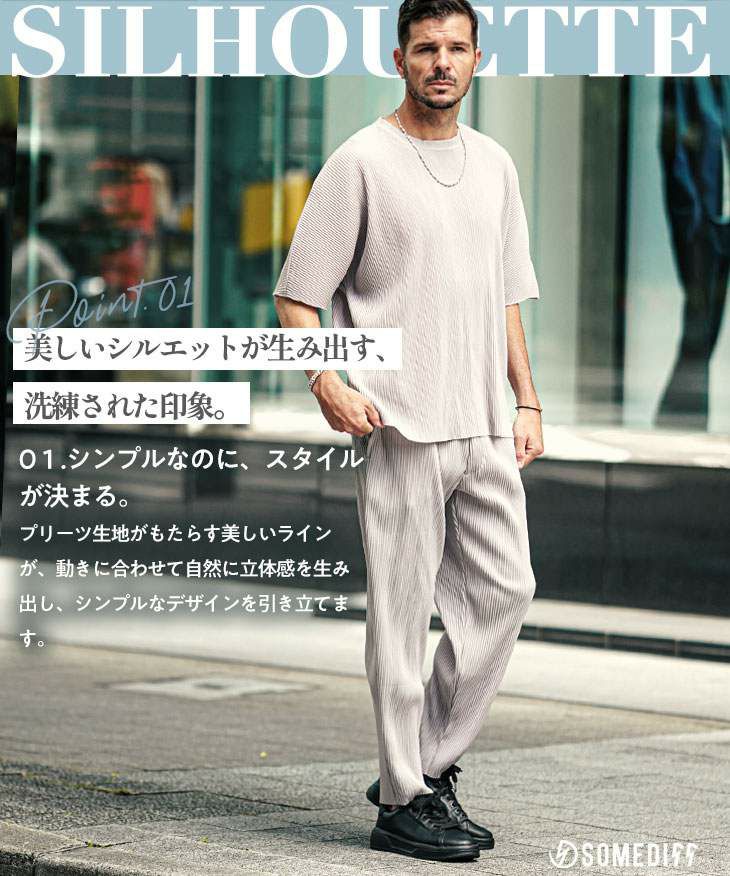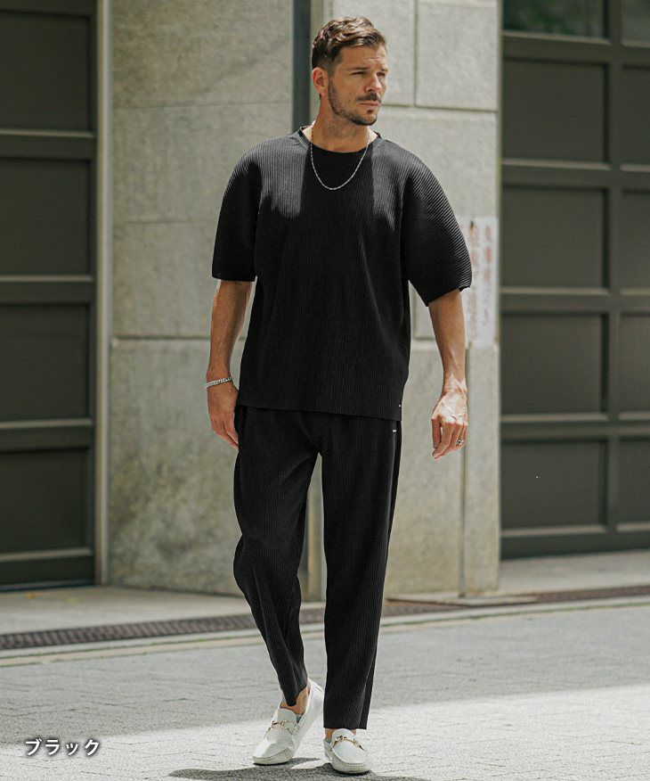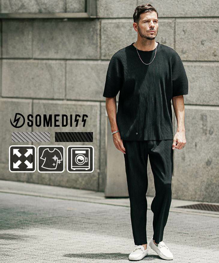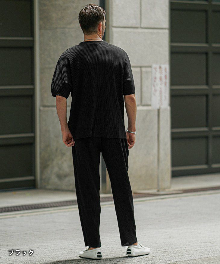 SOMEDIFF/サムディフ プリーツ半袖Tシャツロングパンツセットアップ
