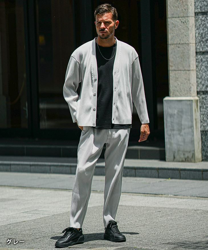 SOMEDIFF/サムディフ プリーツカーディガンセットアップ