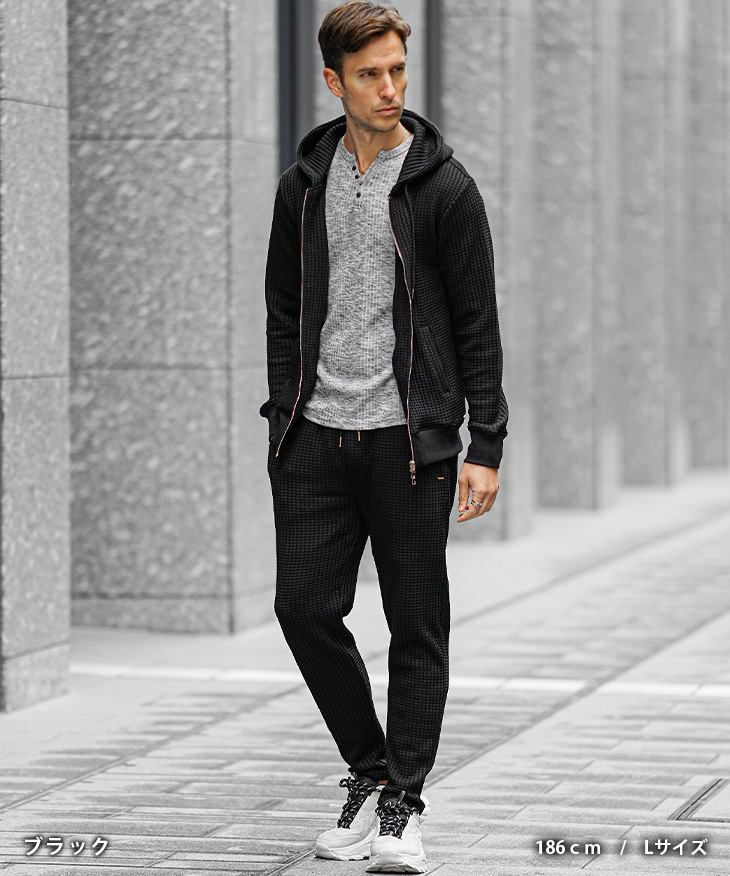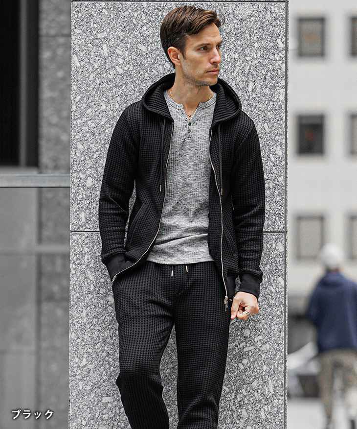 SOMEDIFF/サムディフ ワッフルZIPパーカーセットアップ