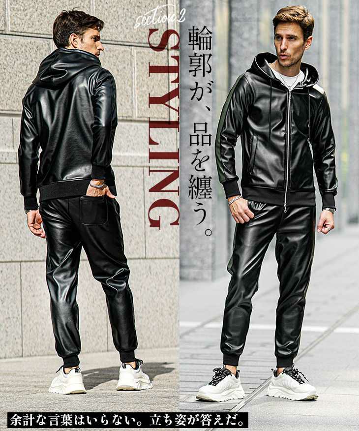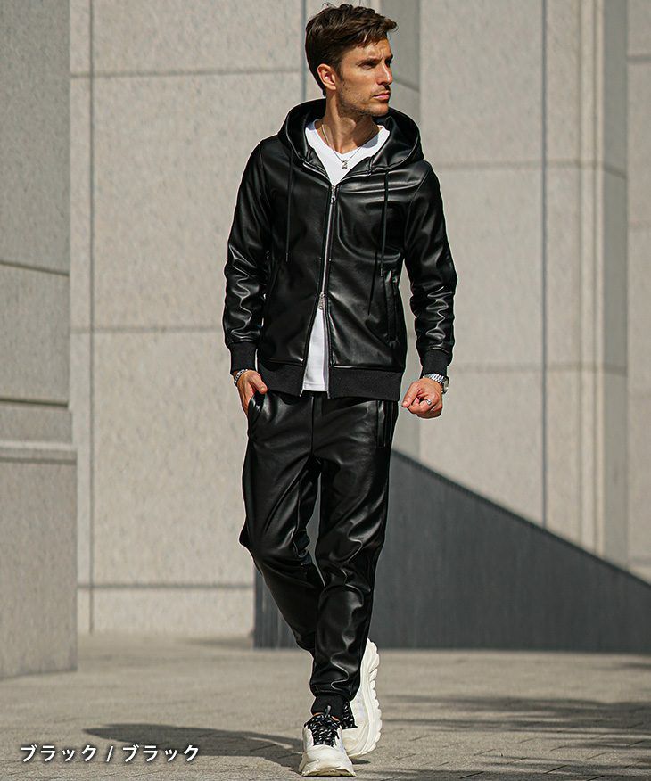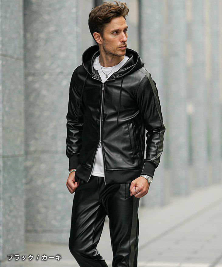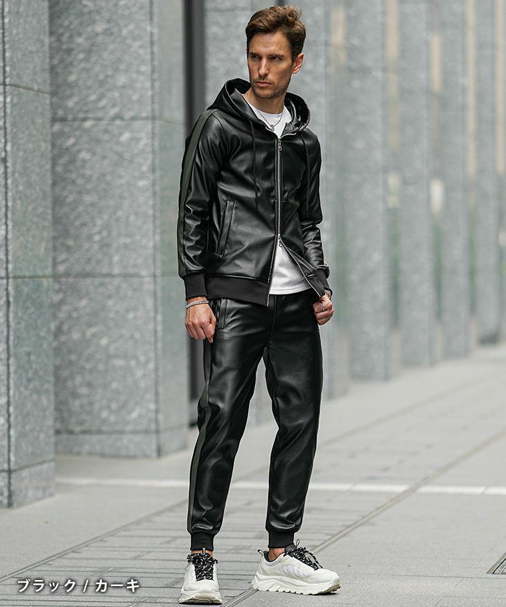 SOMEDIFF/サムディフ PUレザーパーカーセットアップ