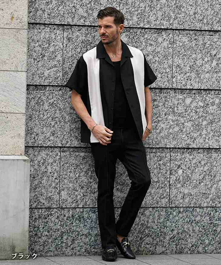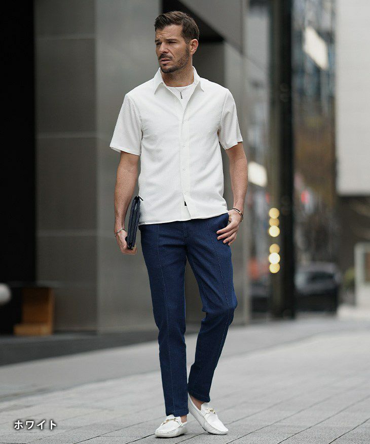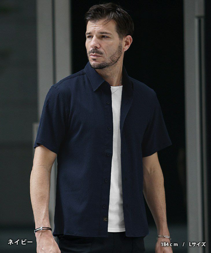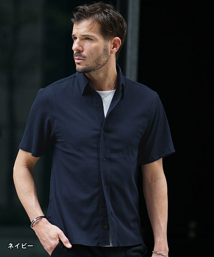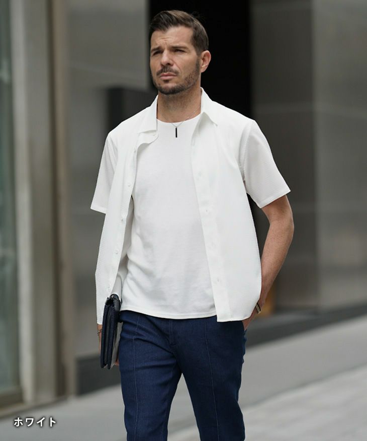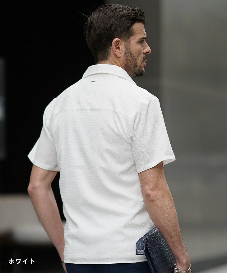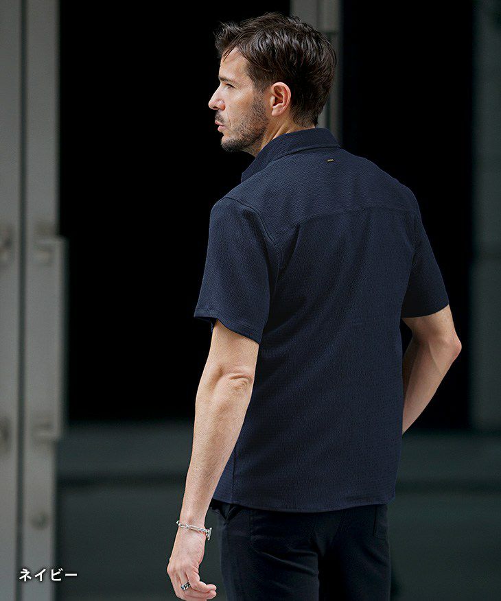 SOMEDIFF/サムディフ 半袖シャイニーフルジップシャツ