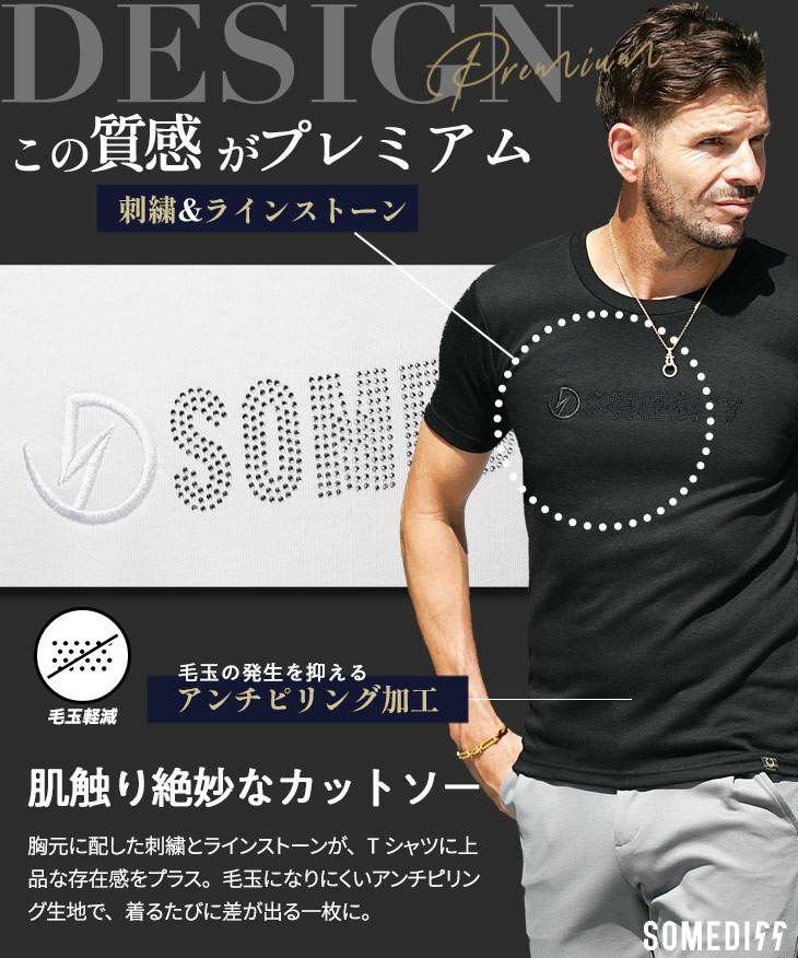 SOMEDIFF/サムディフ ラインストーン刺繍半袖Tシャツ