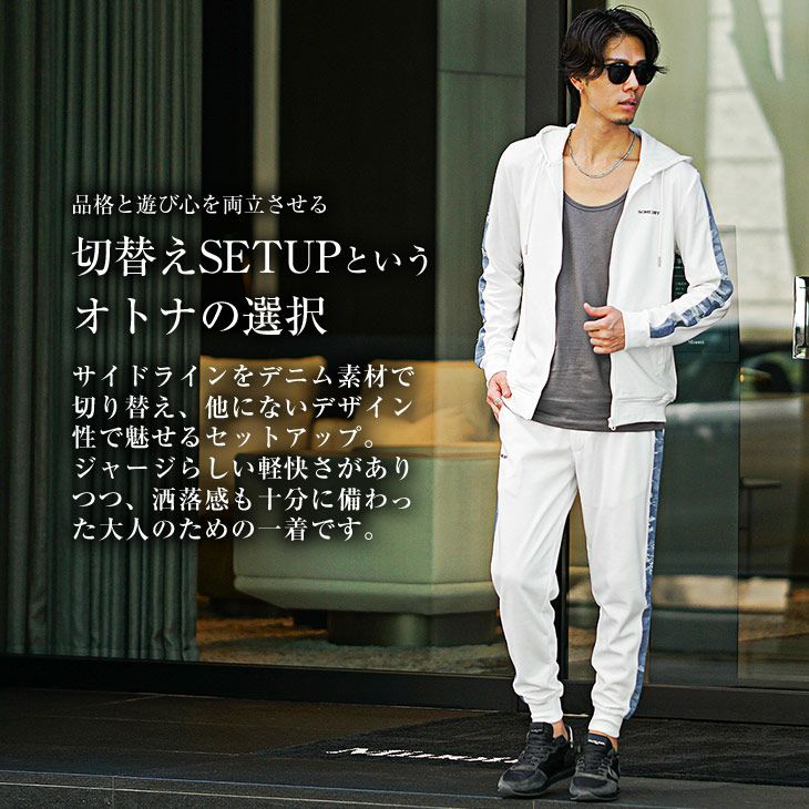 サイドラインスラブデニム切替セットアップ