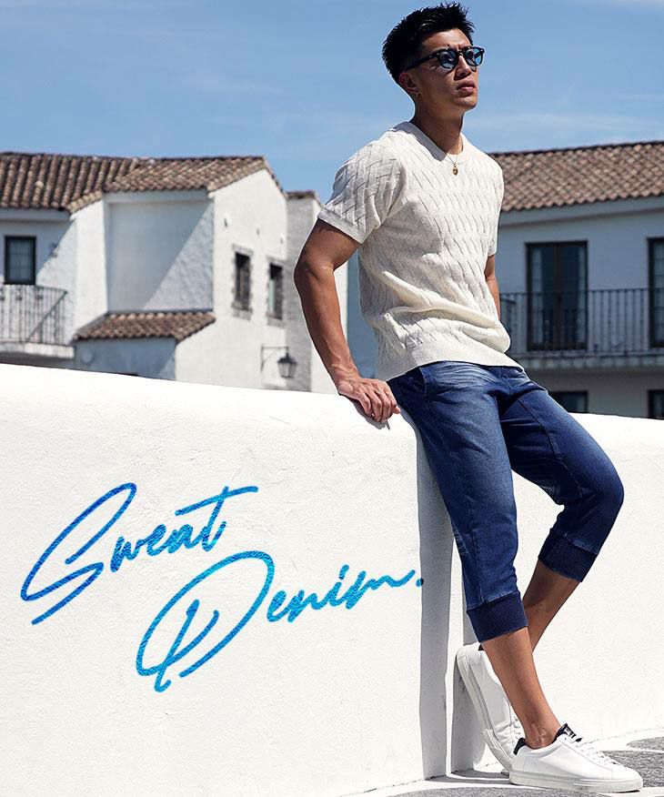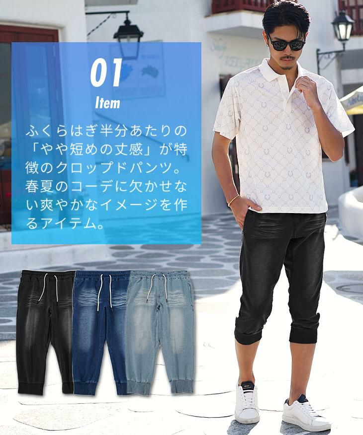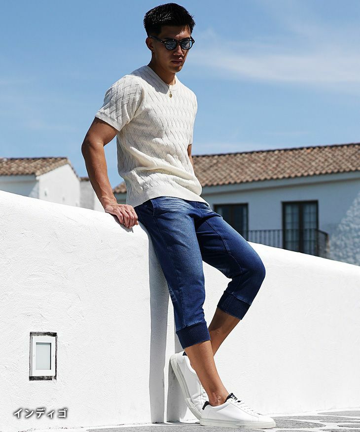 【送料無料】スウェットデニムクロップドジョガーパンツ