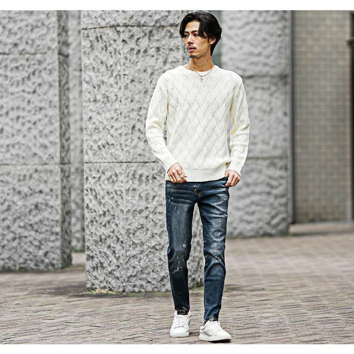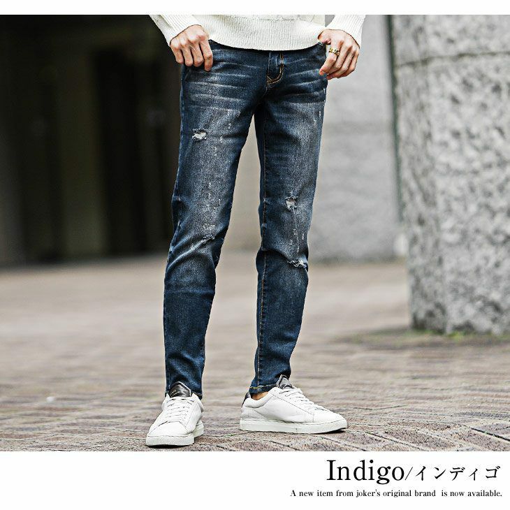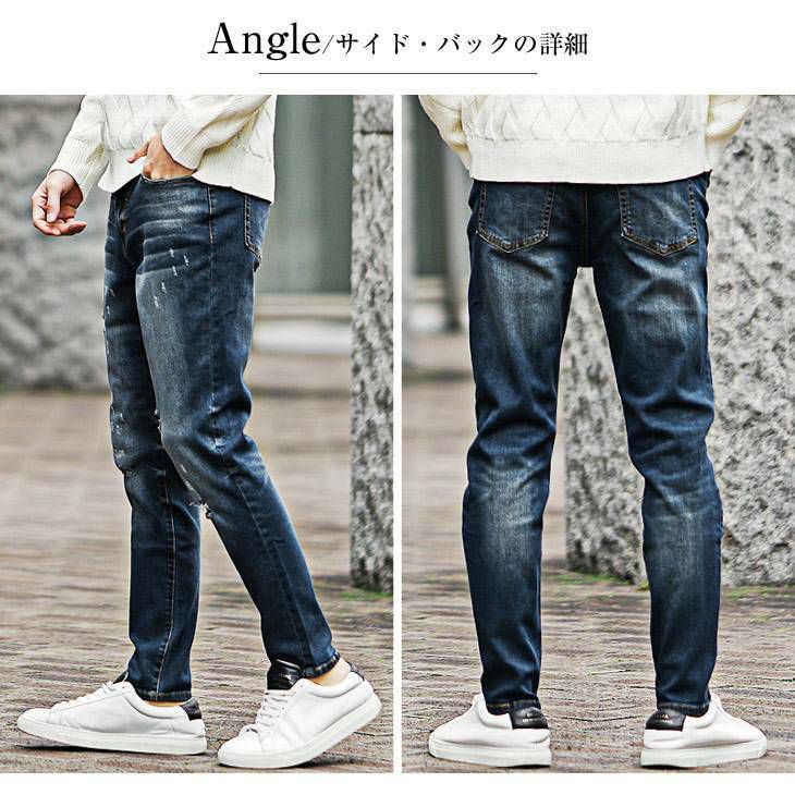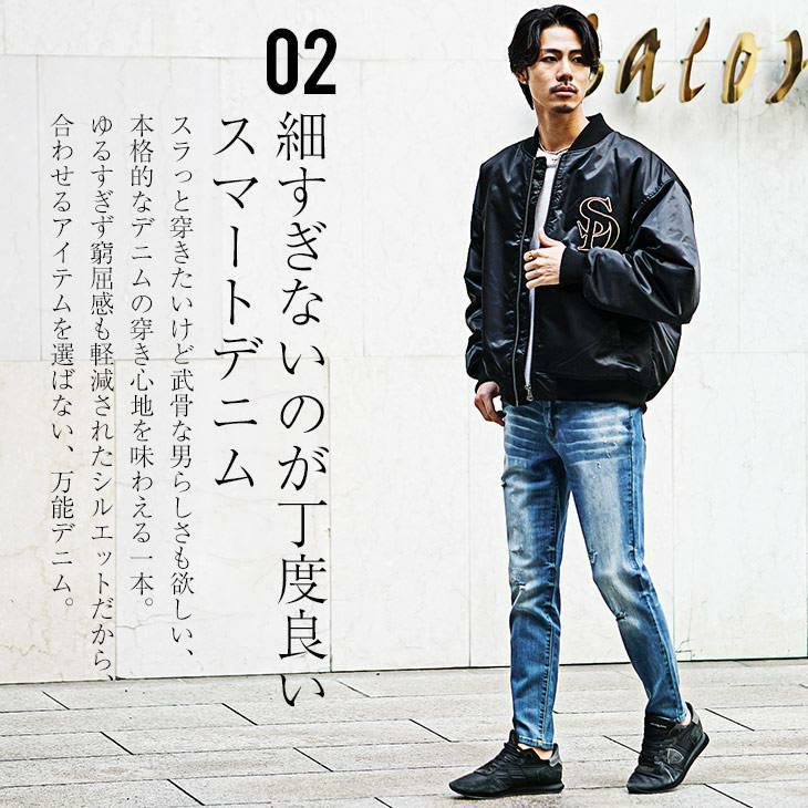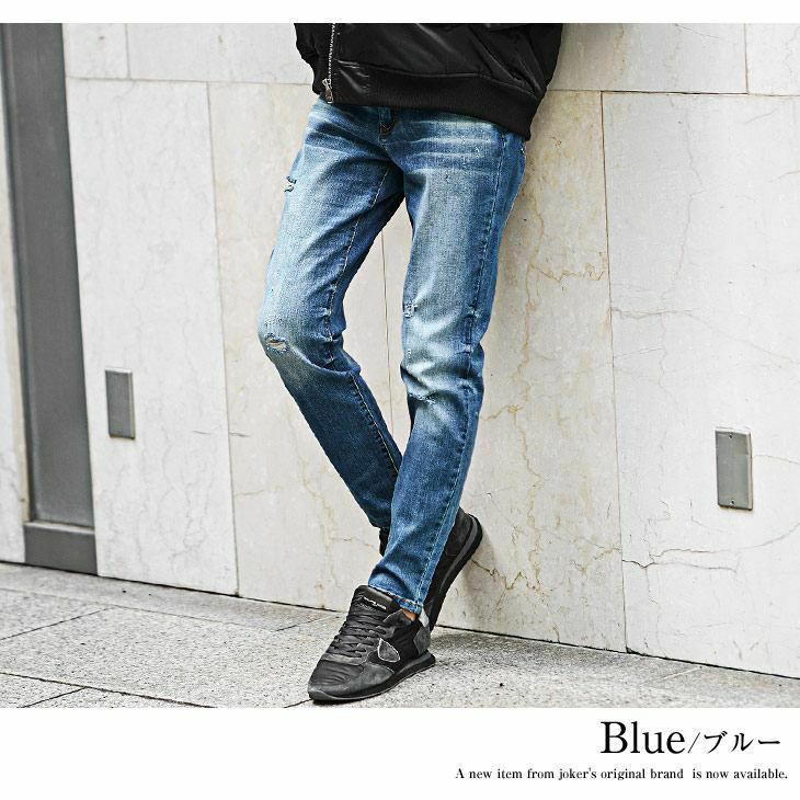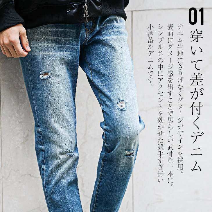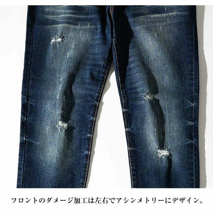 スリムテーパードダメージデニム