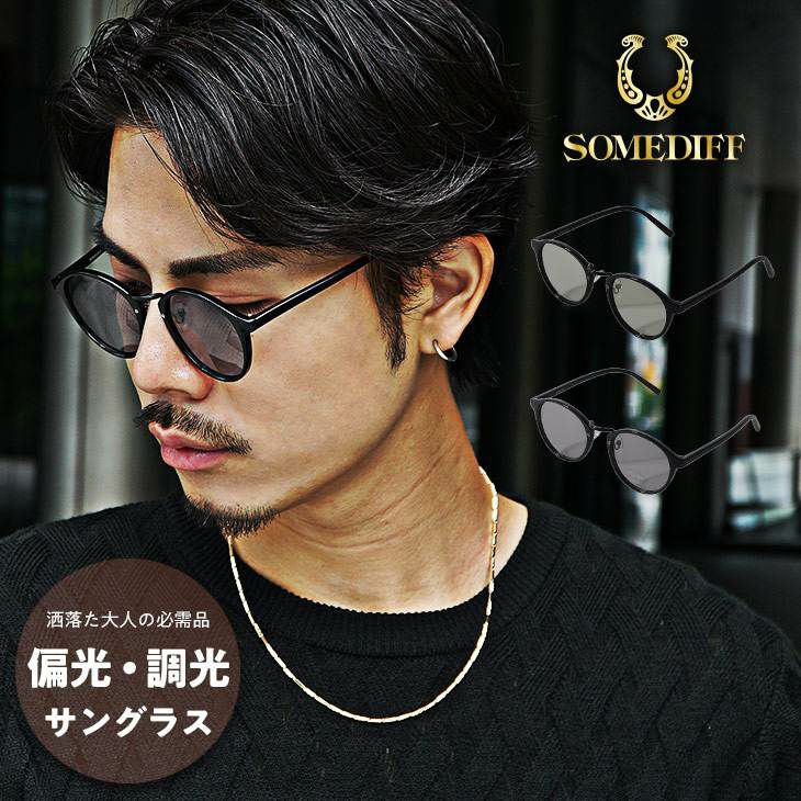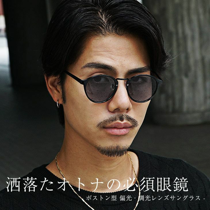 【偏光・調光】ボストン型偏光/調光サングラス