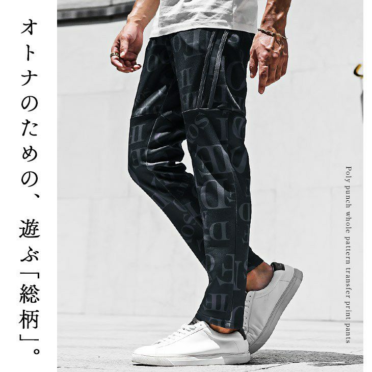 ポンチ素材総柄テーパードパンツ