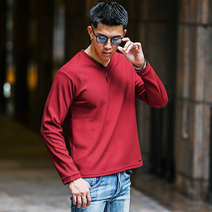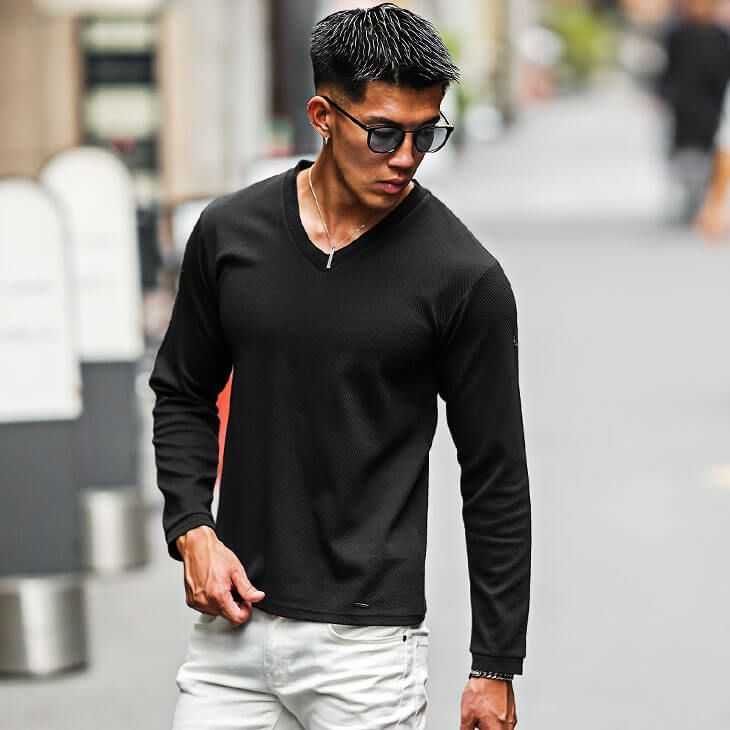 カルゼVネック長袖Tシャツ