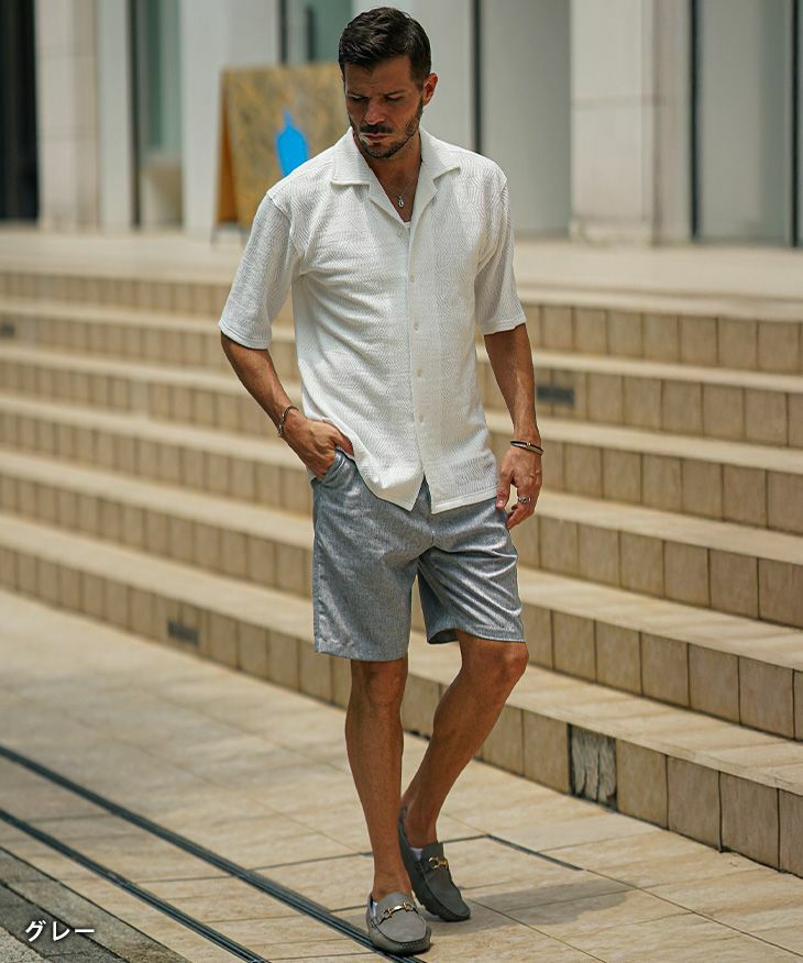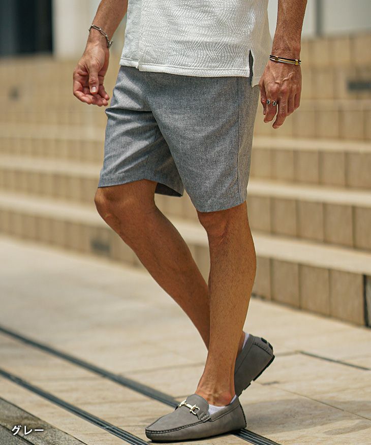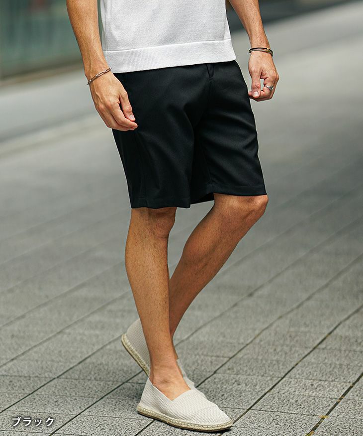 ジャガードリブ付きストレッチ布帛ショートパンツ