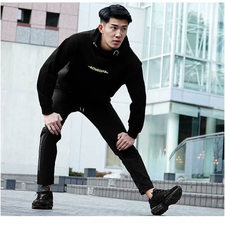 強く、挑戦的なオトコに捧げる、どこまでも強くなれる、 そんな想いが込められたトレーニングウェアブランド「サムディフ+(プラス)」。 『成長』には『刺激が必要』。 肉体だけでなく、ウェアも含めて『刺激』を求めるメンズに届けるため、2021年より始動した最新トレーニングウェアブランド。 ブランドコンセプトにもある『刺激』という観点から、ロゴが1本のラインを貫くことで「刺激が体を貫いている」様子を表す。