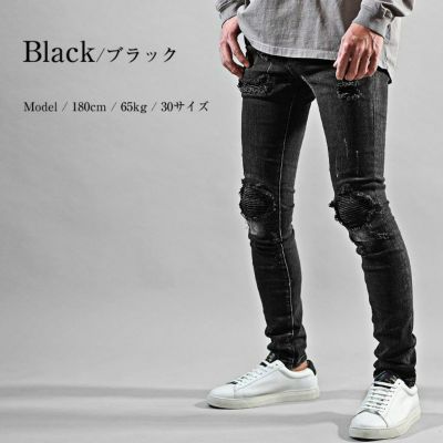 エッジの効いたデザインで魅せる mnmlのダメージスキニーデニム。