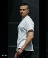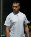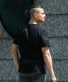 [Lサイズ]を着用しました 他コーデは【コチラ】 程よく余裕のあるサイズ感でした。着丈はお尻7分ほどが隠れるあたりで、袖丈は力こぶ半分あたりです。おなか周りに余裕はありますが、肩幅はジャストです。フィットさせたければMサイズですが、おすすめはLサイズです。