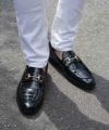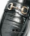 クロコ革をデザインした高級感あふれるローファー。 艶感のある素材と、ゴールドのホースビットを配置することで、 足元から品が溢れ出す一品。