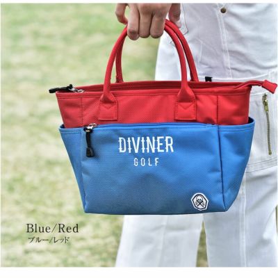 ネイビー/ホワイト、ブルー/レッドの 切り替えデザインのボディに、 刺繍で「DIVINER GOLF」のブランドロゴをデザインしたオシャレなカートバッグ。