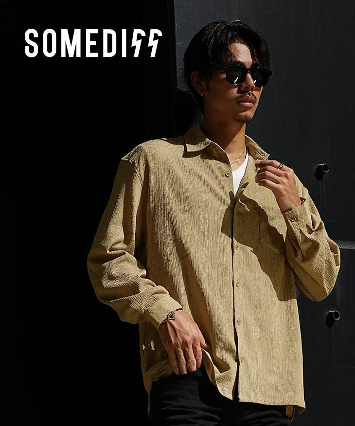 縦方向に凹凸のある細かいシボ(不規則なシワ模様)が 入っている楊柳生地を使用することで、 肌への接地面を減らし清涼感のある着こなしが可能に。 それだけでなく、無地でもシンプル過ぎないデザイン性を演出。