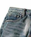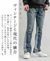 ヴィンテージ感が漂うダメージ加工や ブリーチ加工を施しつつ、2トーンの 切り替えデザインやフレアシルエットを 採用することで、ブラッシュアップされた一本。