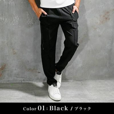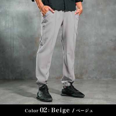 スラックスのようにフロント部分に タックを採用することで、ドレッシーな 雰囲気を演出しつつ、裾のリブで 程よく抜け感を演出した一本。