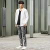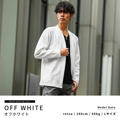 柄魅せで着こなしを格上げする ノーカラーカーディガン。