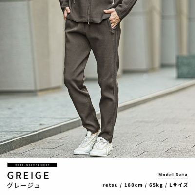 ハリ感のあるミラノリブ素材が 高級感や重厚感を演出する大人の艶感パンツ。