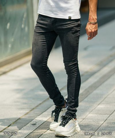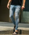 夏でも快適に穿ける、接触冷感素材を使用したスキニーデニム。