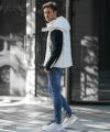 無駄のないシルエットに機能性を さりげなく融合させた、上品な印象のフードブルゾン。