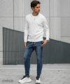 ブリーチ風加工を施した表面は、 程よくこなれた印象を演出し、 カジュアルながら大人の余裕を感じさせます。 ジョガーパンツならではの裾リブがシルエットを 引き締め、リラックス感とスタイリッシュさを両立。