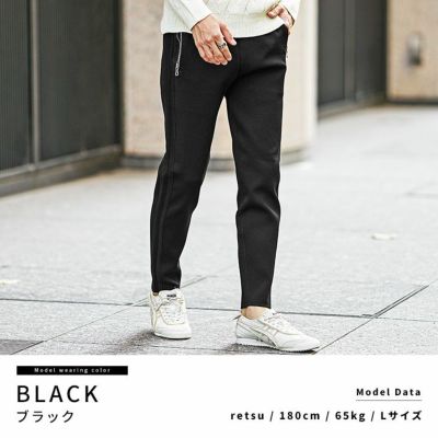 ハリ感のあるミラノリブ素材が 高級感や重厚感を演出する大人の艶感パンツ。