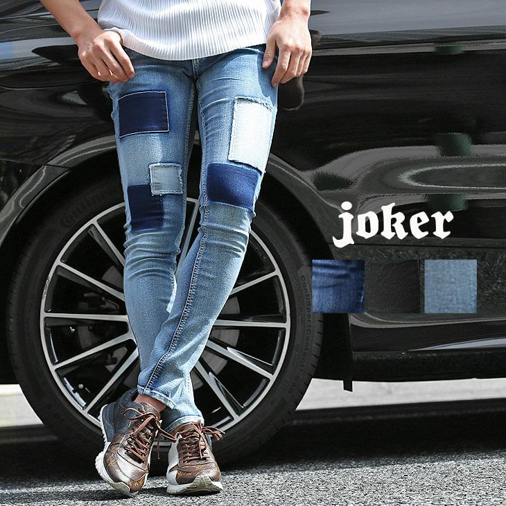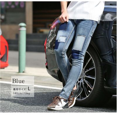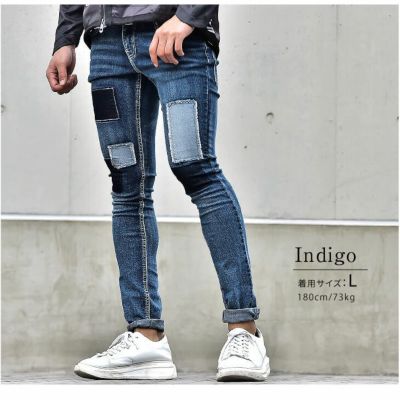 コーディネートをスッキリとオシャレに魅せてくれる 細身のスキニーシルエットはそのままに、 パッチワークデザインを施すことによって 「脱」無難の個性を表現できる仕上がりに。