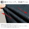 膝下にかけて細くなるテーパードシルエットを 採用し、スタイル良く魅せるこのデニム。