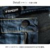 アシンメトリーに配置されたダメージ加工で 嫌味のない武骨な男らしさも演出。