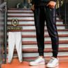 シンプルなジョガーパンツのサイドに ブランド名をニットテープでプリントし、 存在感のある一本に。