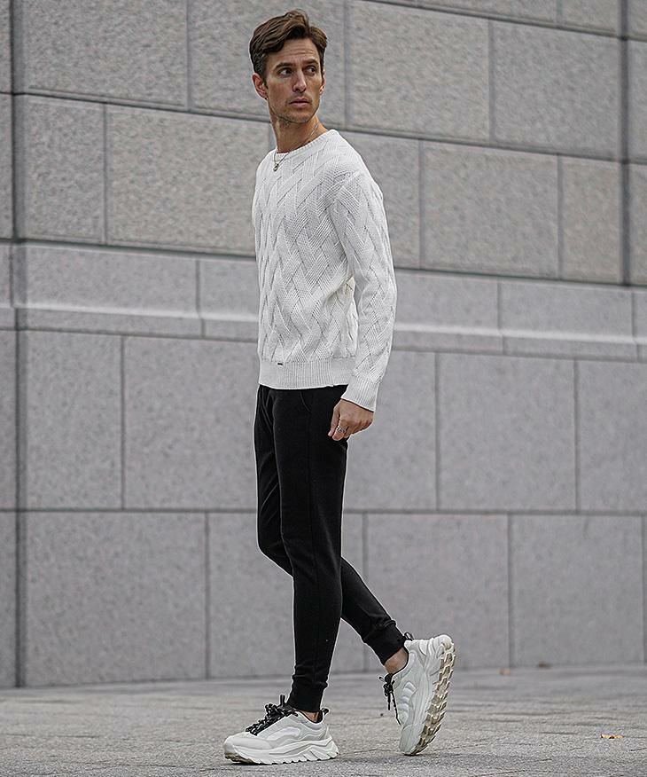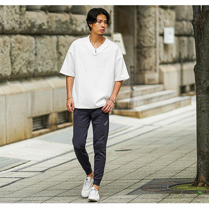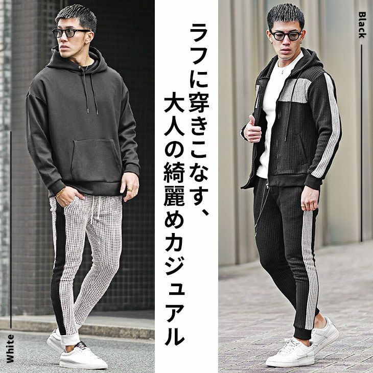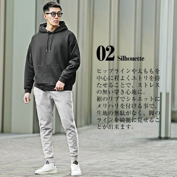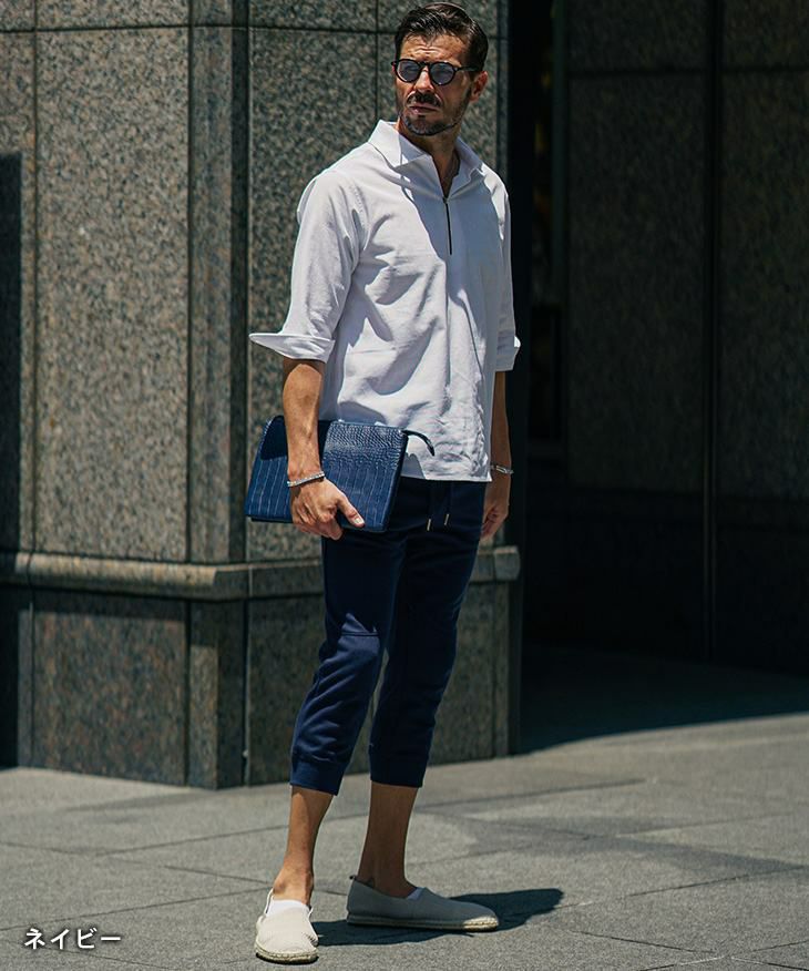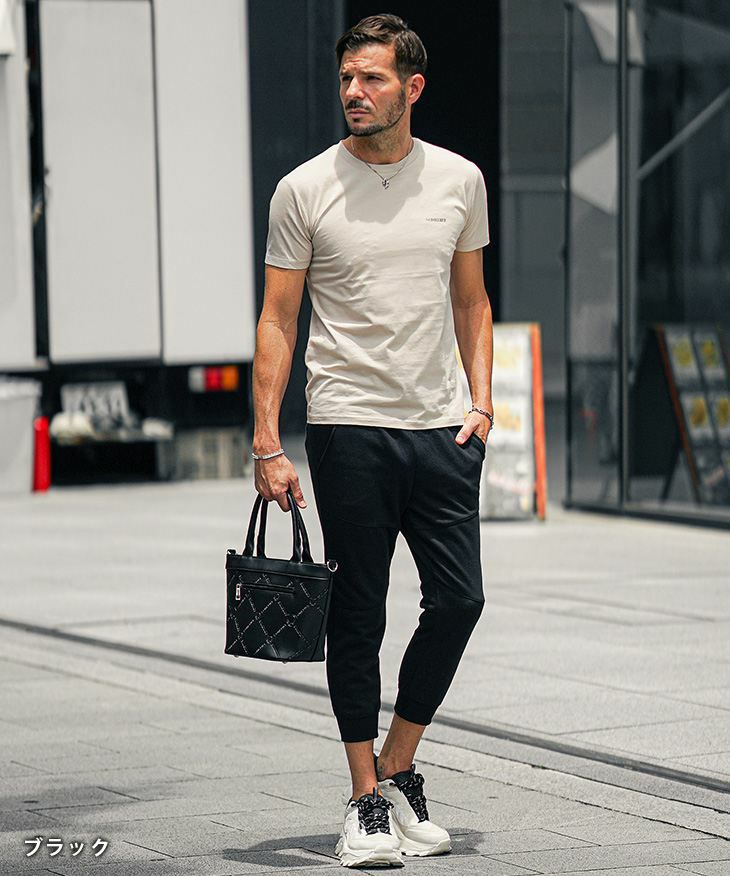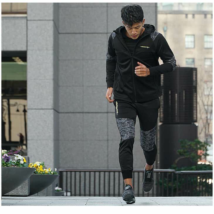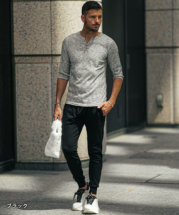 いまやメンズファッションコーデの定番のアイテムになりつつあり、スウェット素材・ジャージ素材が多い。