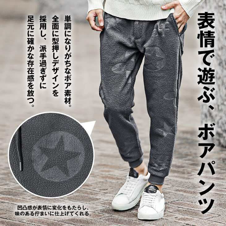 joker 軽快に“暖”を穿きこなす『総柄ボアジョガーパンツ』