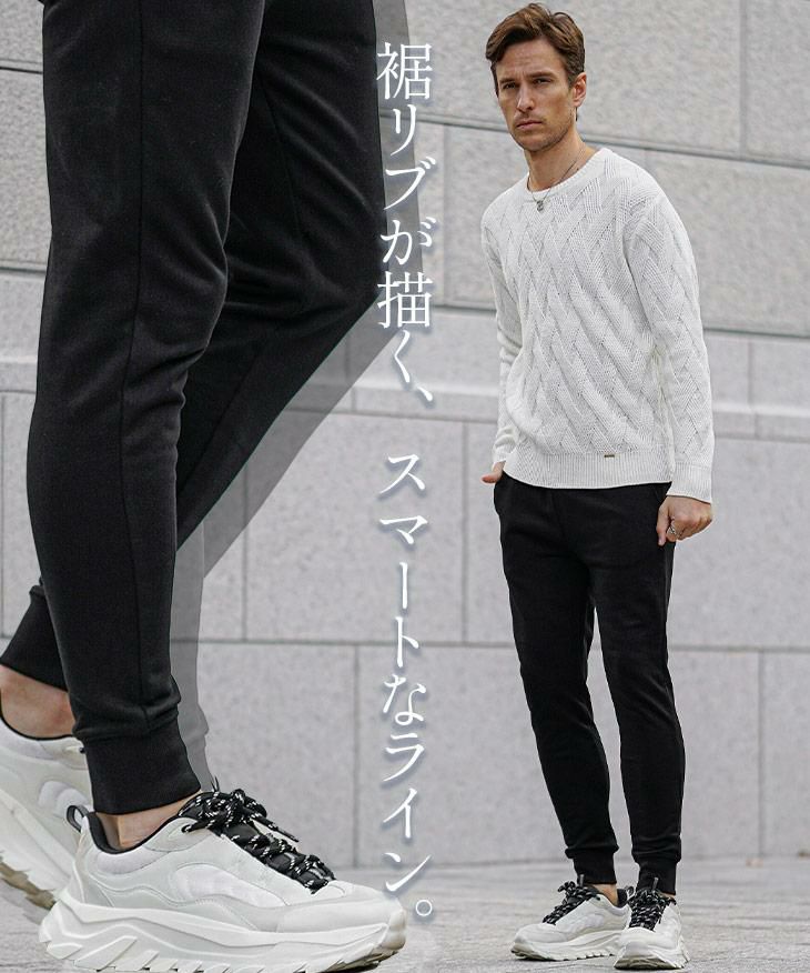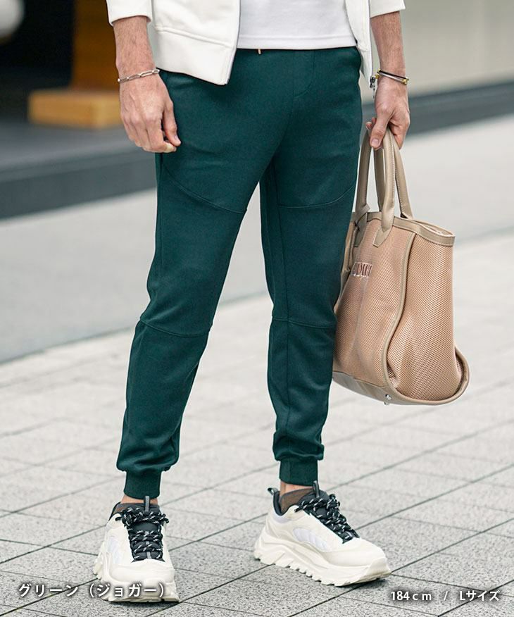 動きやすく穿き心地がいいことに加え、細身のシルエットで穿くだけでスッキリとした印象になることから、 どんなコーディネートにでも合わせやすく、簡単にこなれ感が出ることからジョガーパンツが人気です。