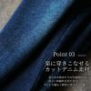 ■Material/素材感 見た目はデニムなのに、穿き心地は柔らかい、 そんなスウェット素材を使用。 デニムのおしゃれな風合いと 伸縮性のある動きやすい穿き心地を実現。
