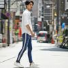 サイドラインをデザインし、 タテのラインを意識した脚長効果と スポーツMIXな雰囲気を演出。