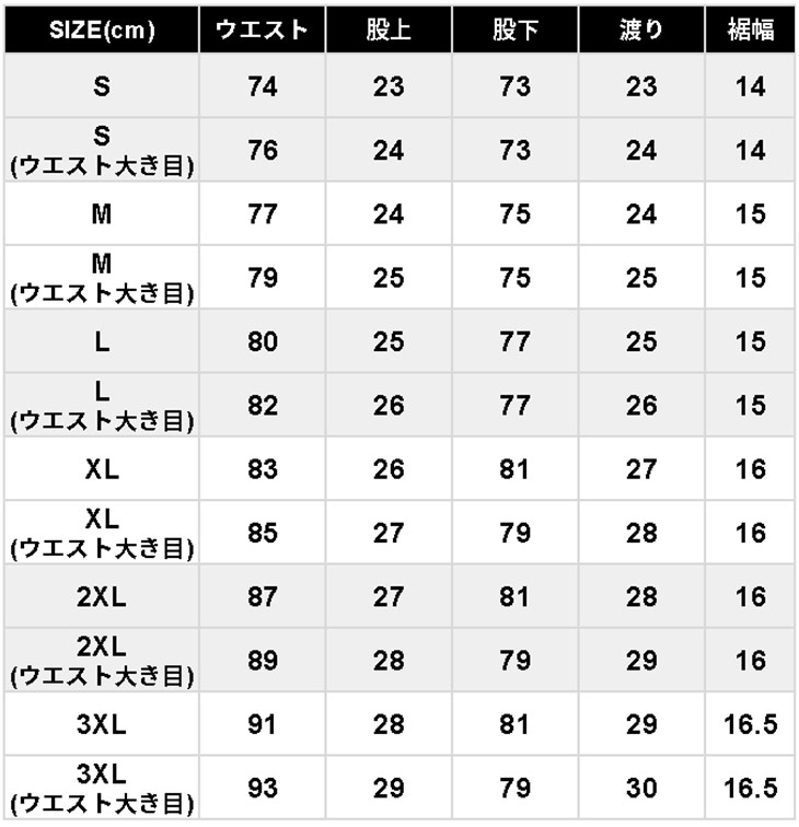 • 2XL(ウエスト大きめ) 在庫切れ