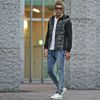 [Lサイズ]を着用しました 他コーデは【コチラ】 ちょうど良いサイズ感でした。フロントのみにダウンが入っており、着膨れせずにスタイリッシュな仕上がりになります。暖かさもあって、見た目良し機能性良しのアイテムです。