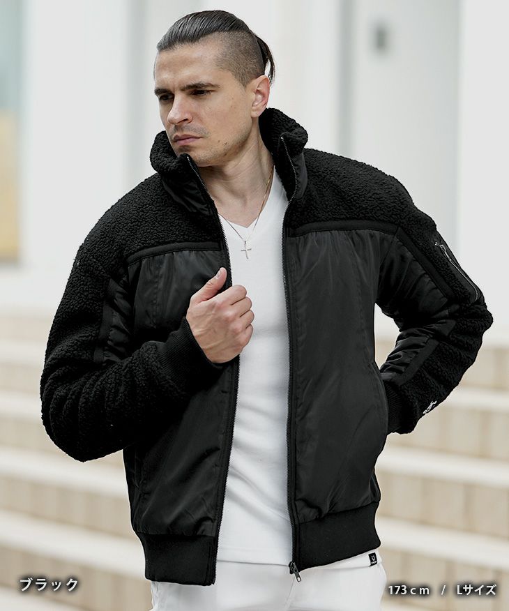 【ボア×ポリツイル切替中綿ブルゾン】