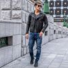 [XLサイズ]を着用しました 他コーデは【コチラ】 全体的にちょうど良いサイズ感でした。インナーに、ニットや少し厚めのTシャツも着用できるサイジングでした。リサイクルレザーを使用しているため、比較的柔らかさがあり着用感は良かったです。 |