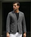 フロントは2ボタン仕様で、きちんと感のある ルックスながら堅すぎず、幅広いシーンに対応。 オフィスでの着用はもちろん、 ビジカジスタイルにも自然になじみ、 シャツやカットソーとの相性も抜群です。