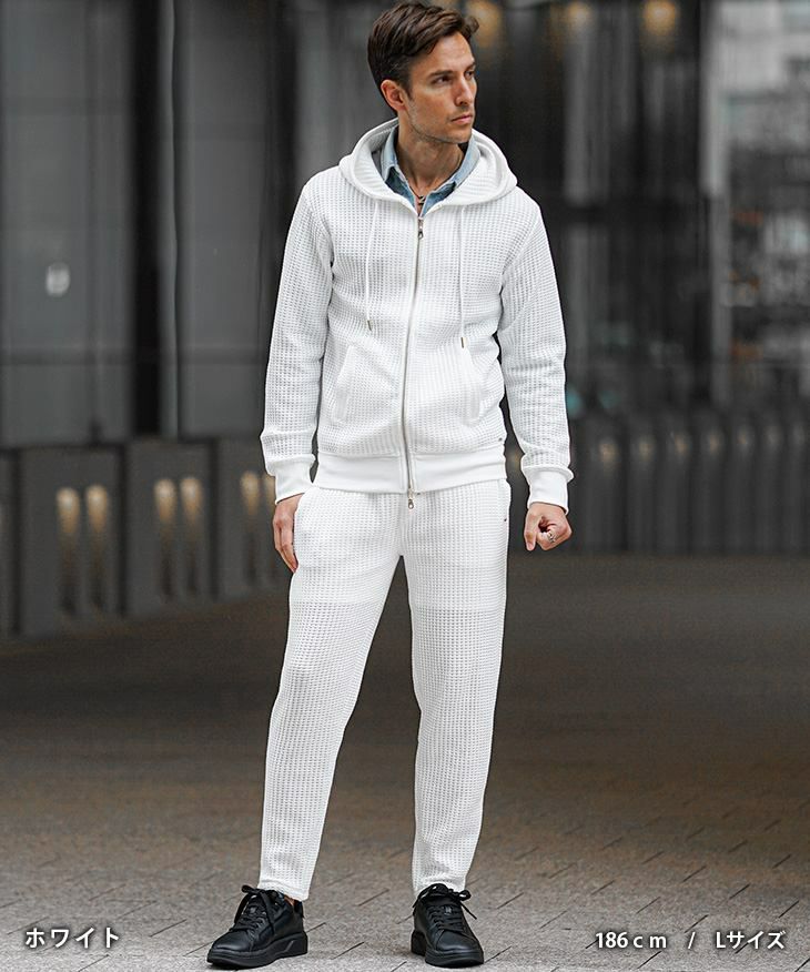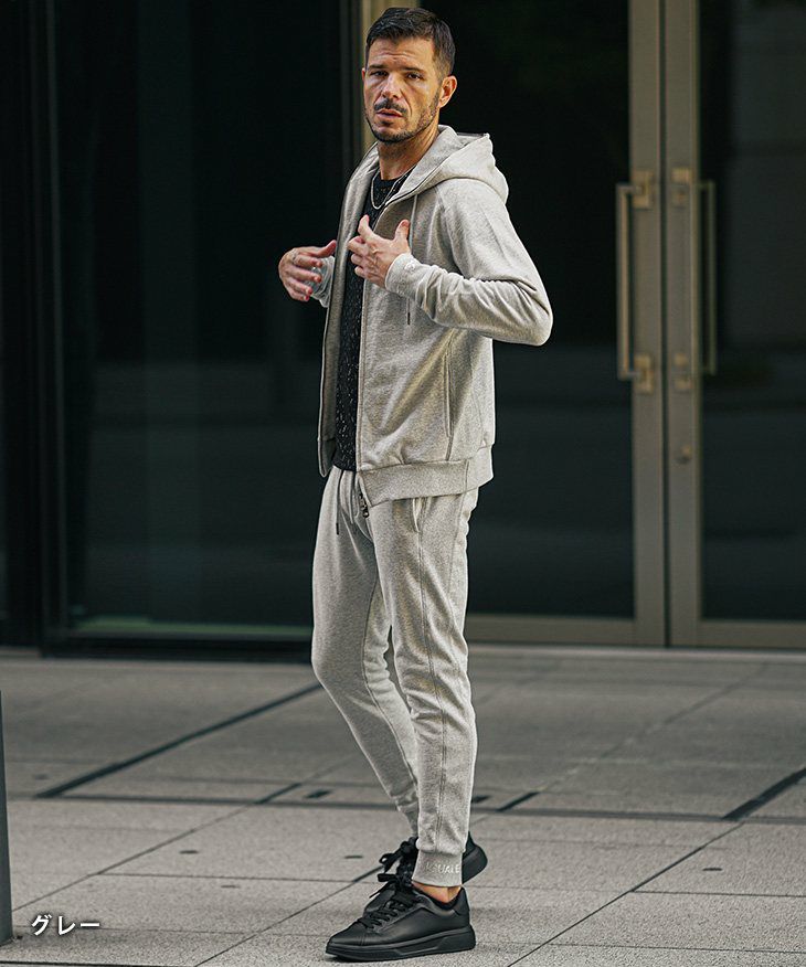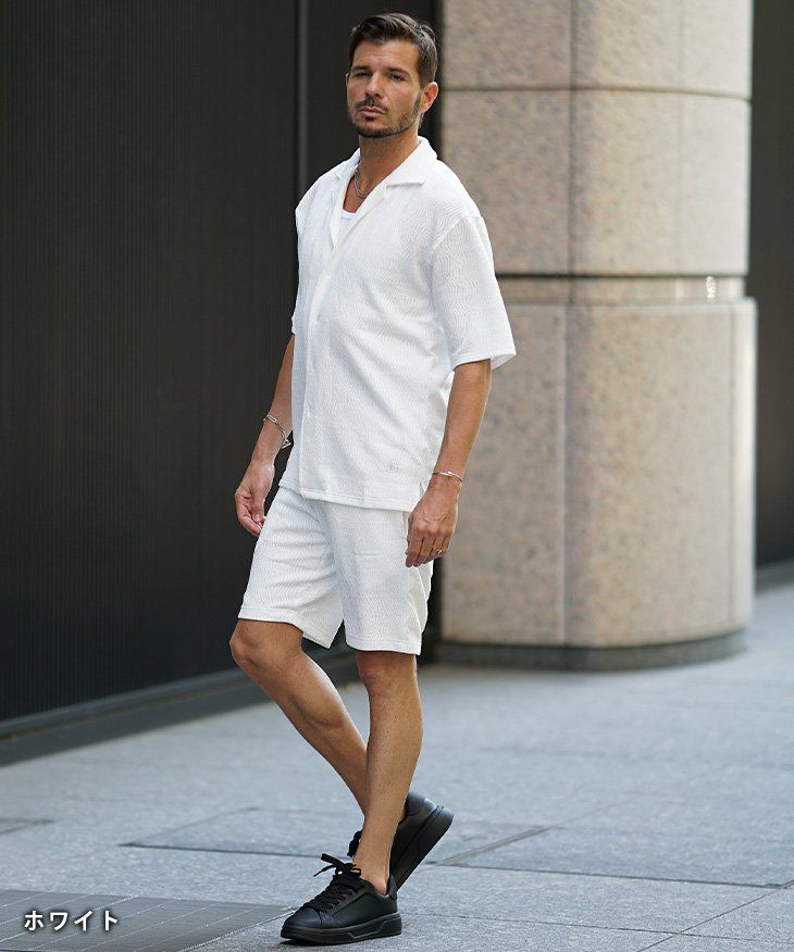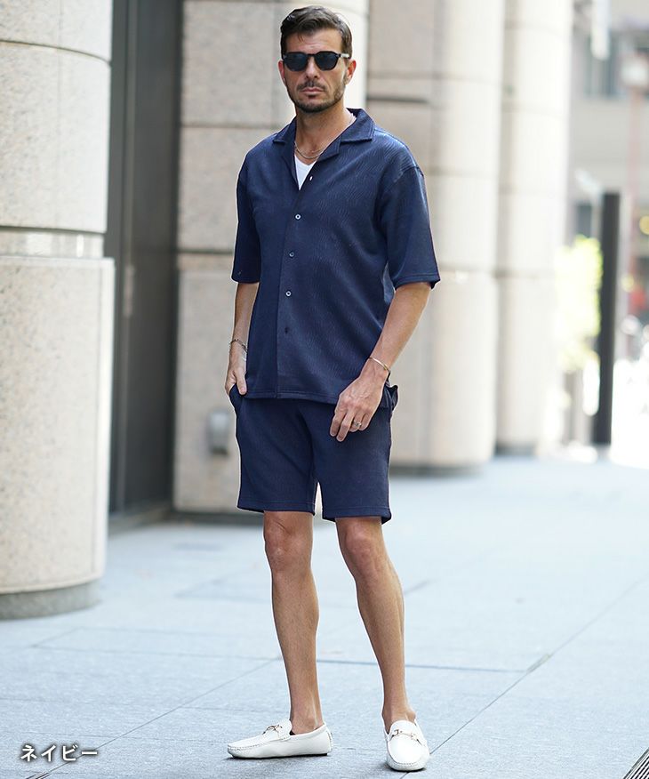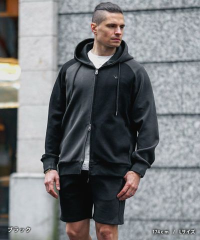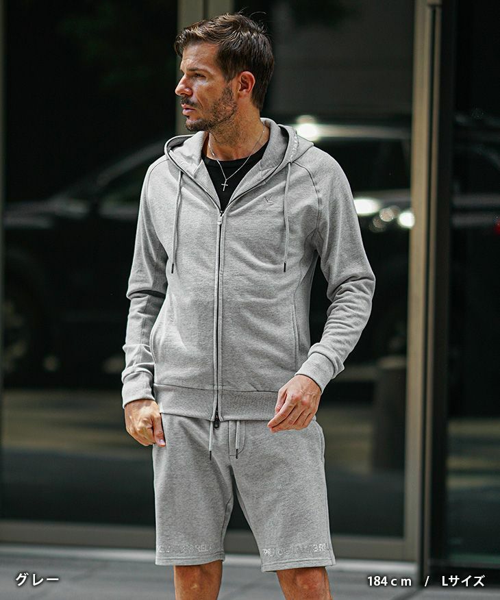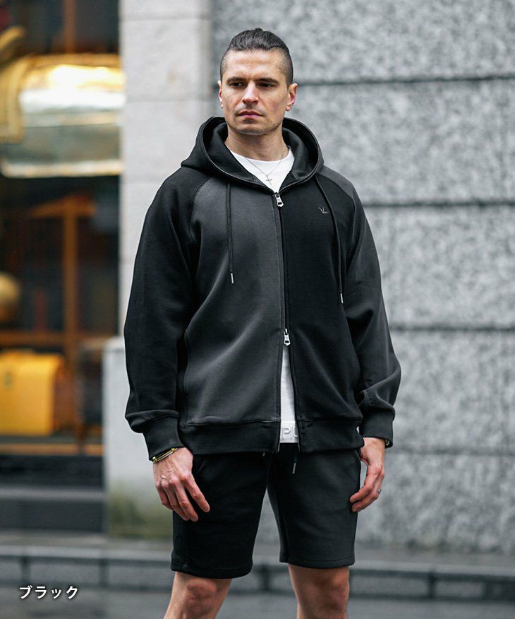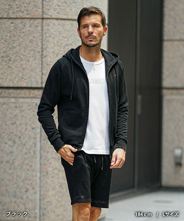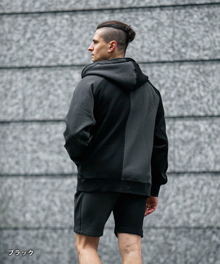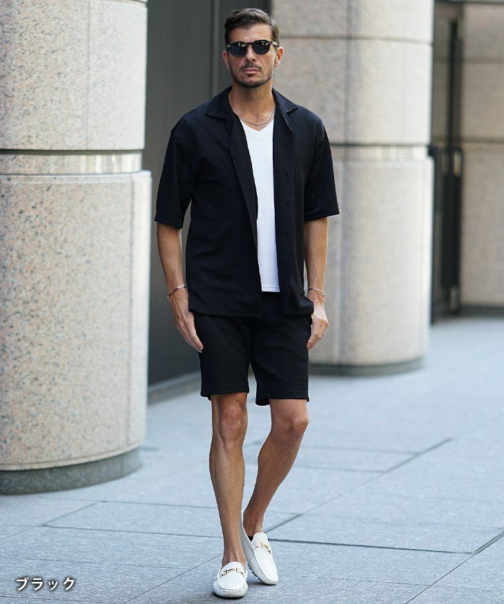 パーカーや半袖トップス、ショーツなどを使った、ラフさと統一感を兼ね備えたスタイル。