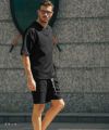 [XLサイズ]を着用しました 全体的にかなりゆったりしている印象でした。、Tシャツの着丈はお尻が全て隠れる長さで、袖丈は肘が隠れる長さでした。ショーツのウエストはぴったりで問題なく着用できました。裾は膝が出る長さで、お尻周りはゆとりがありました。XLサイズがオススメです。 |