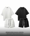 [Lサイズ]を着用しました 他コーデは【コチラ】 Tシャツは肩幅にゆとりがあり、胸周りと身幅にもかなりの余裕がありあます。袖丈は肘がしっかりと隠れる長さで、着丈はお尻が全て隠れる長さです。ショーツのウエストはぴったりフィットし、裾は膝上の長さです。お尻周りにはゆとりがあり、伸縮性のある素材なので、かなり動きやすいです。Lサイズがオススメです。